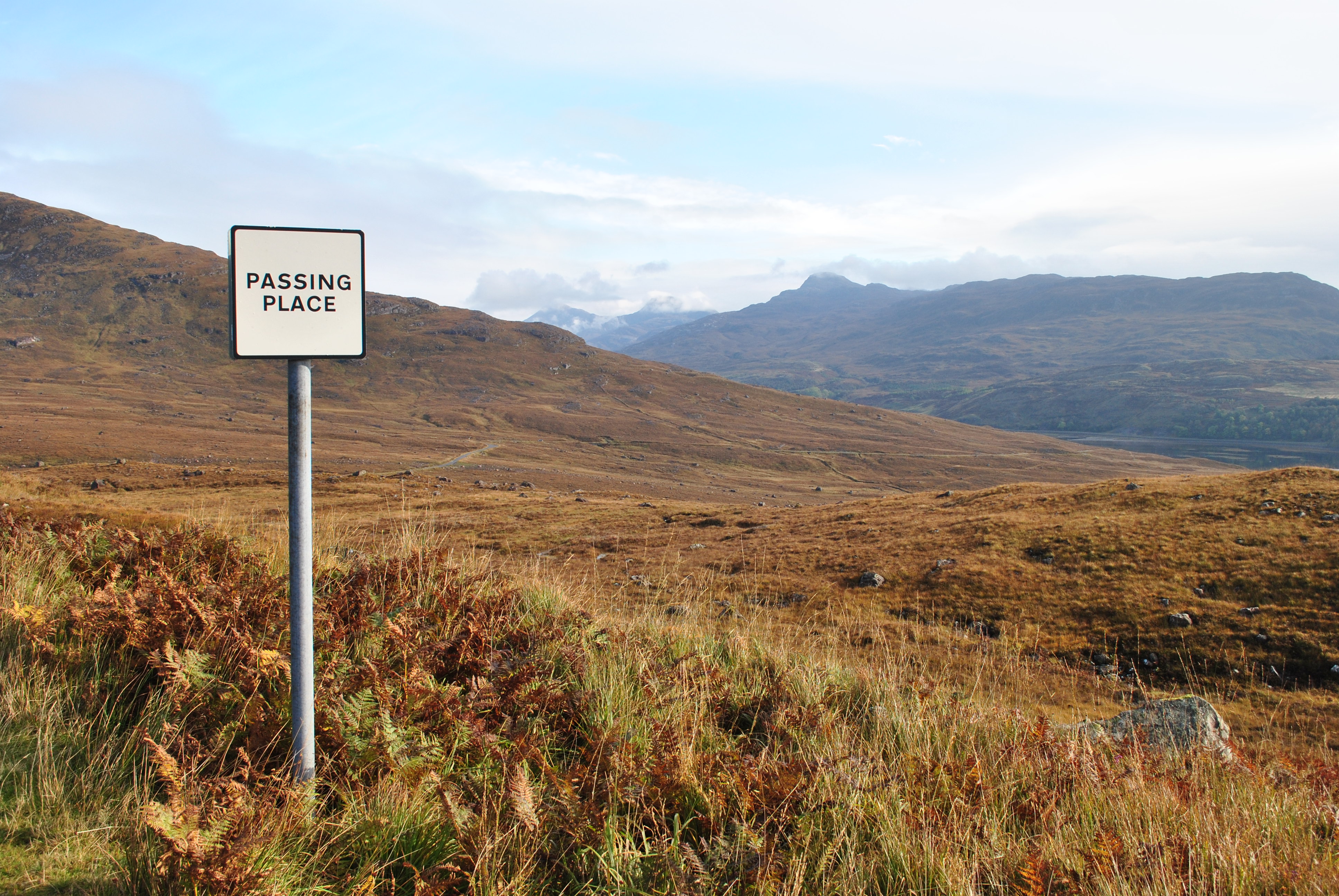 Pünktlich zur Abfahrt aber kommt die Sonne aus den Wolken hervor, als wolle sie mich aus dem Haus locken in die grandiose Weite des schottischen Hochlands. Ich mache mich auf, ohne gefrühstückt zu haben. Ich habe nur einen Kaffee in der Warmhaltetasse, ich will zum Spar in Lochcarron, da gibt es die leckersten pieces weit und breit. Zwei Brötchen, eins mit Ei und Speck und eins mit Mayonnaisenei und Zwiebel im Gepäck, mache ich mich nach auf Applecross.