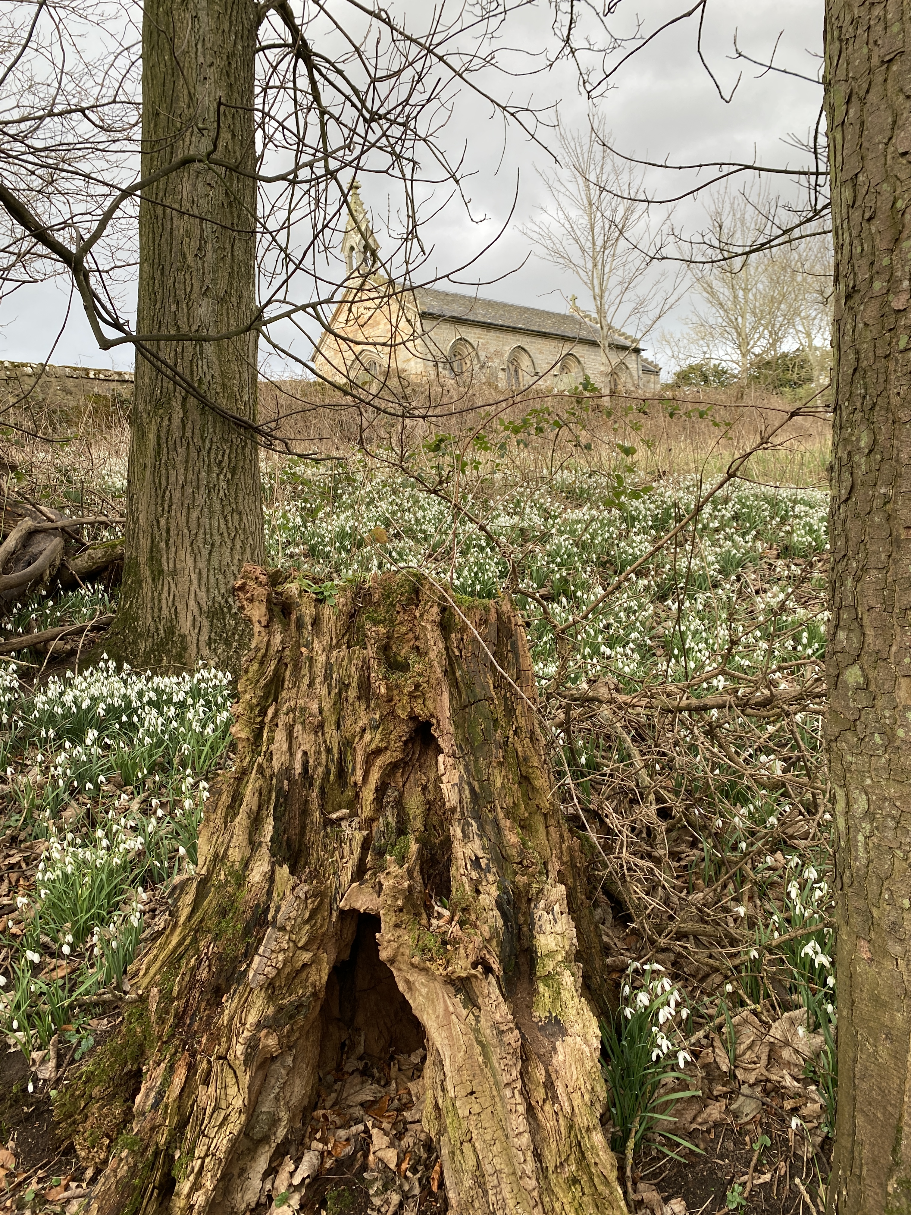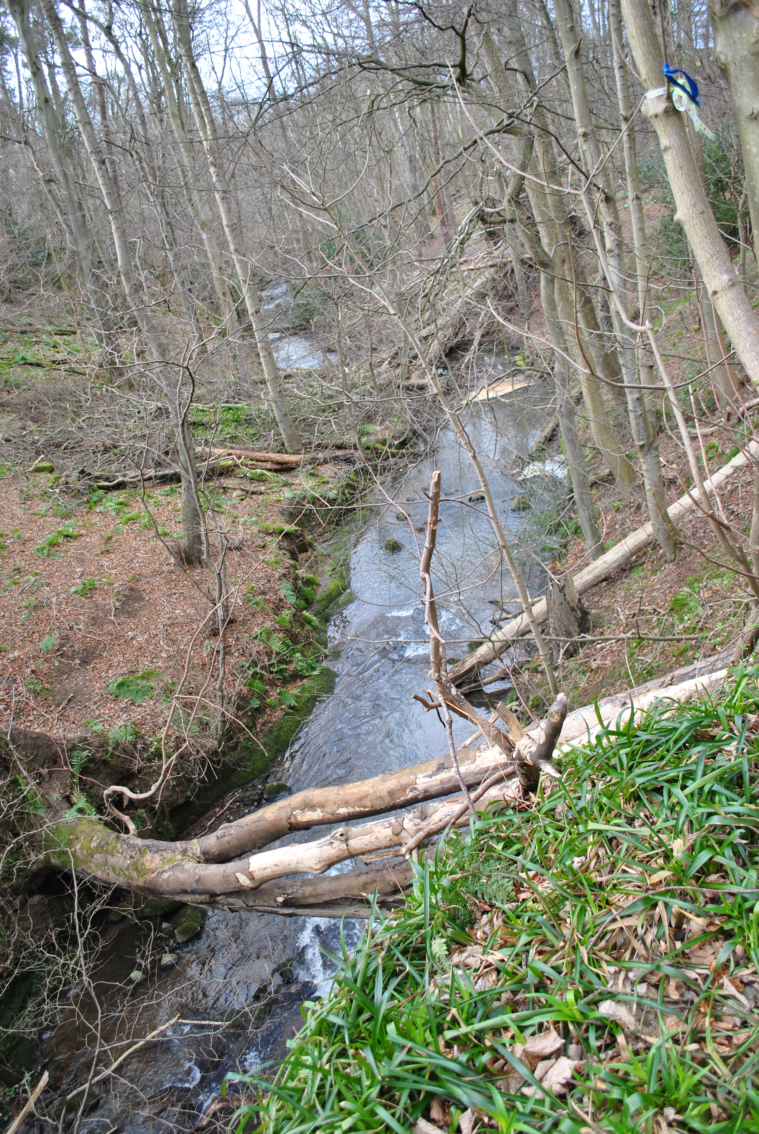 Doch das wirklich spannende liegt verborgen in der dunklen Schlucht unterhalb von Kirche und Kultstein. Der Mann geht voraus, ich folge in den kahlen Winterwald, gespannt auf das, was uns erwartet. Wir sind nicht die einzigen. Zwei junge Paare drücken sich zwischen den Bäumen herum, machen den Eindruck, nicht gesehen werden zu wollen. Dann haben wir die Kultstätte erreicht.