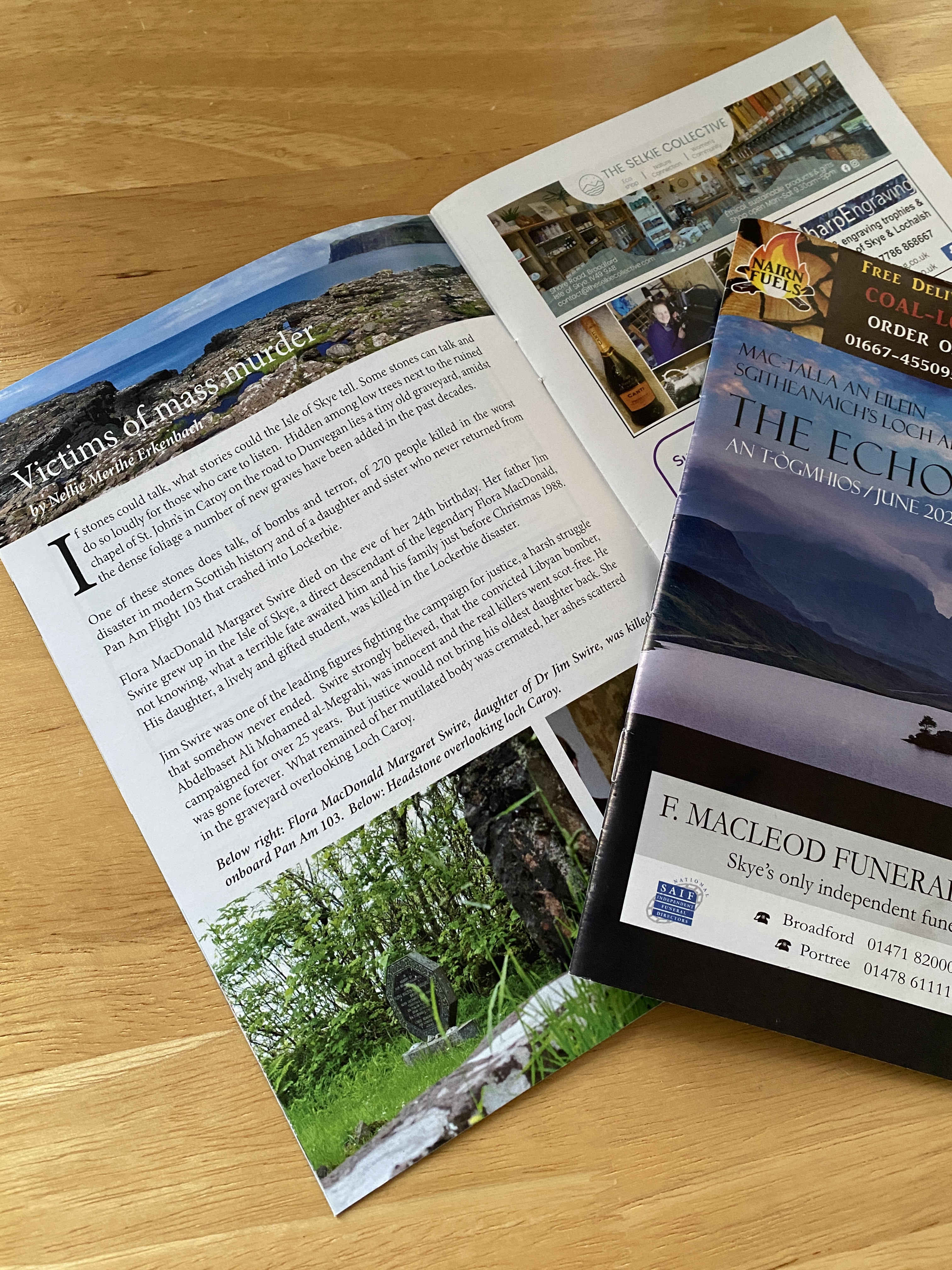 Gerti hat für mich „Band 2 der Highland Crime Serie „Im Dunkel von Skye“ außerordentlich gründlich auf Fehler gelesen. Zum Dank hatte ich ihr ein Exemplar mit Widmung geschickt. Nur leider ist das Buch nie angekommen. Dafür erreichte mich nun Gertis Geschichte. Wunderbar!