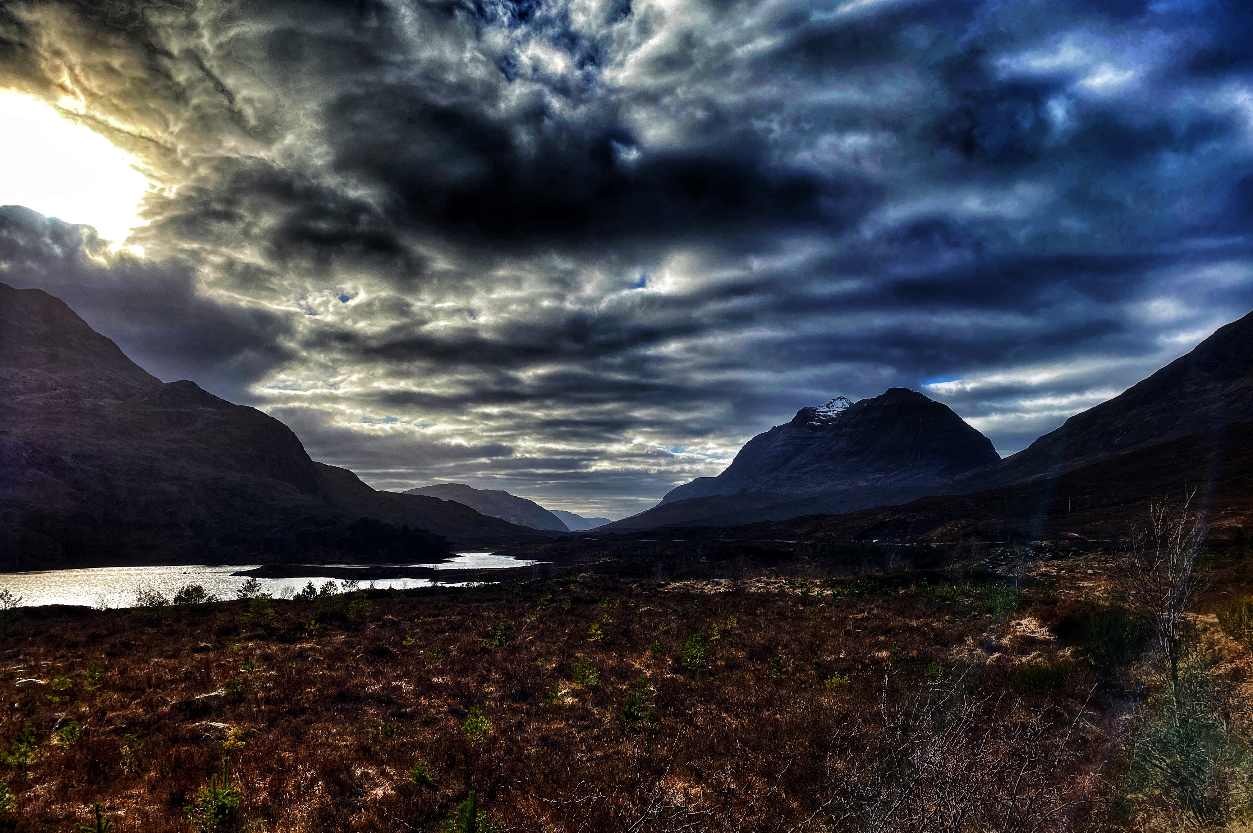 Endlich bin ich erlöst. Wir werfen noch den Brief in den Briefkasten und stehen kurz darauf wieder auf der Straße. Die Polizei hat sich leise verabschiedet, nur der Quad steht noch vor der Eingangstür. Während der Kleine aufgekratzt wie ein Gummiball den Gehweg entlanghüpft genieße ich das Panorama von Meer, Wolken und der Insel Skye.