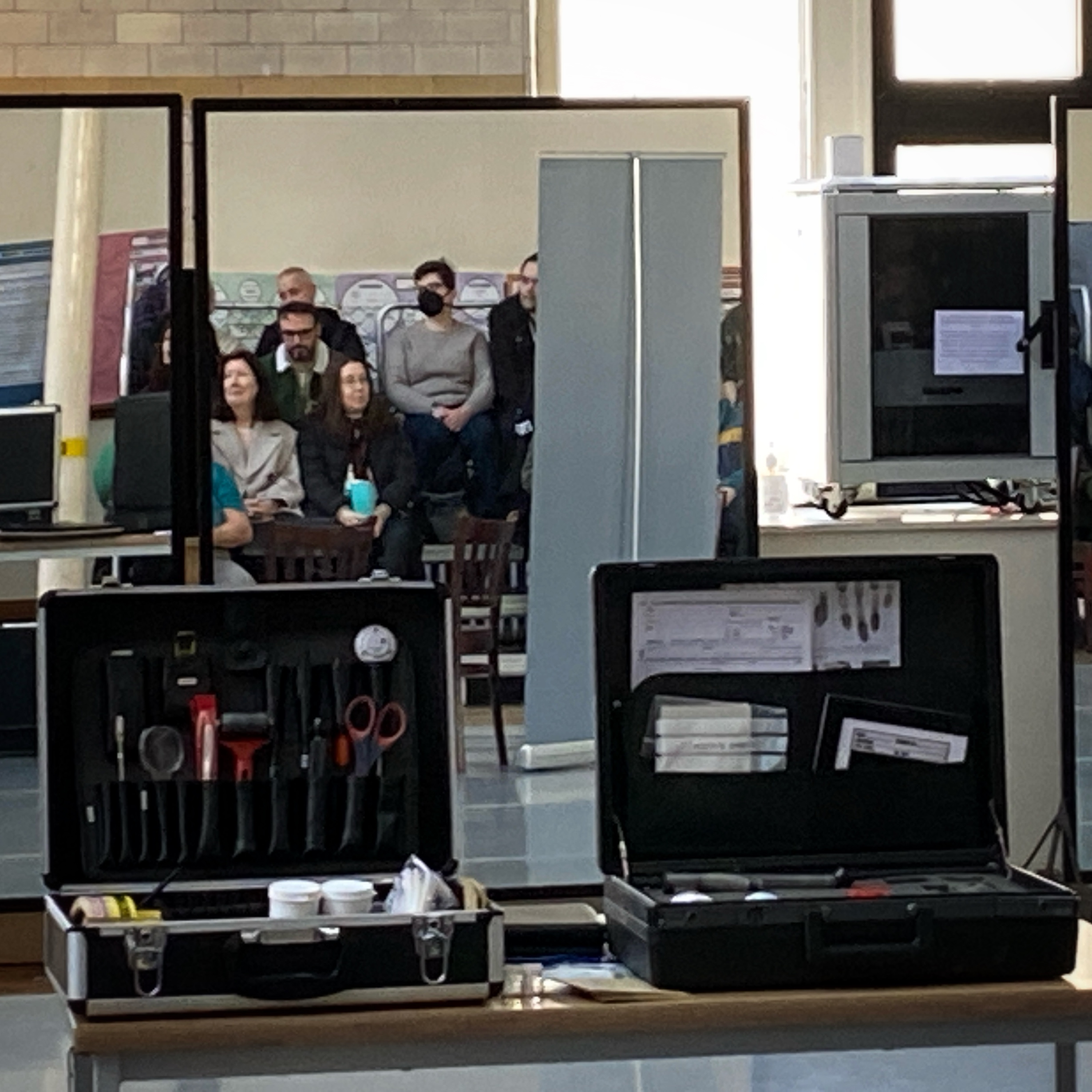 Unsere Gastgeberin war Wendy Deegan, eine Forensikerin mit jahrzehntelanger Erfahrung bei der Polizei. Klein, drahtig, mit grau melierten Haaren und einer Hornbrille, die sie immer wieder auf der Nase zurechtrückte. Sie hatte eine beeindruckende Präsenz – selbstbewusst, schlagfertig und mit einem trockenen Humor, der den Raum füllte. Sie war die perfekte Frau für harte Realität der Forensik jenseits der glamourösen Hollywood-Version.