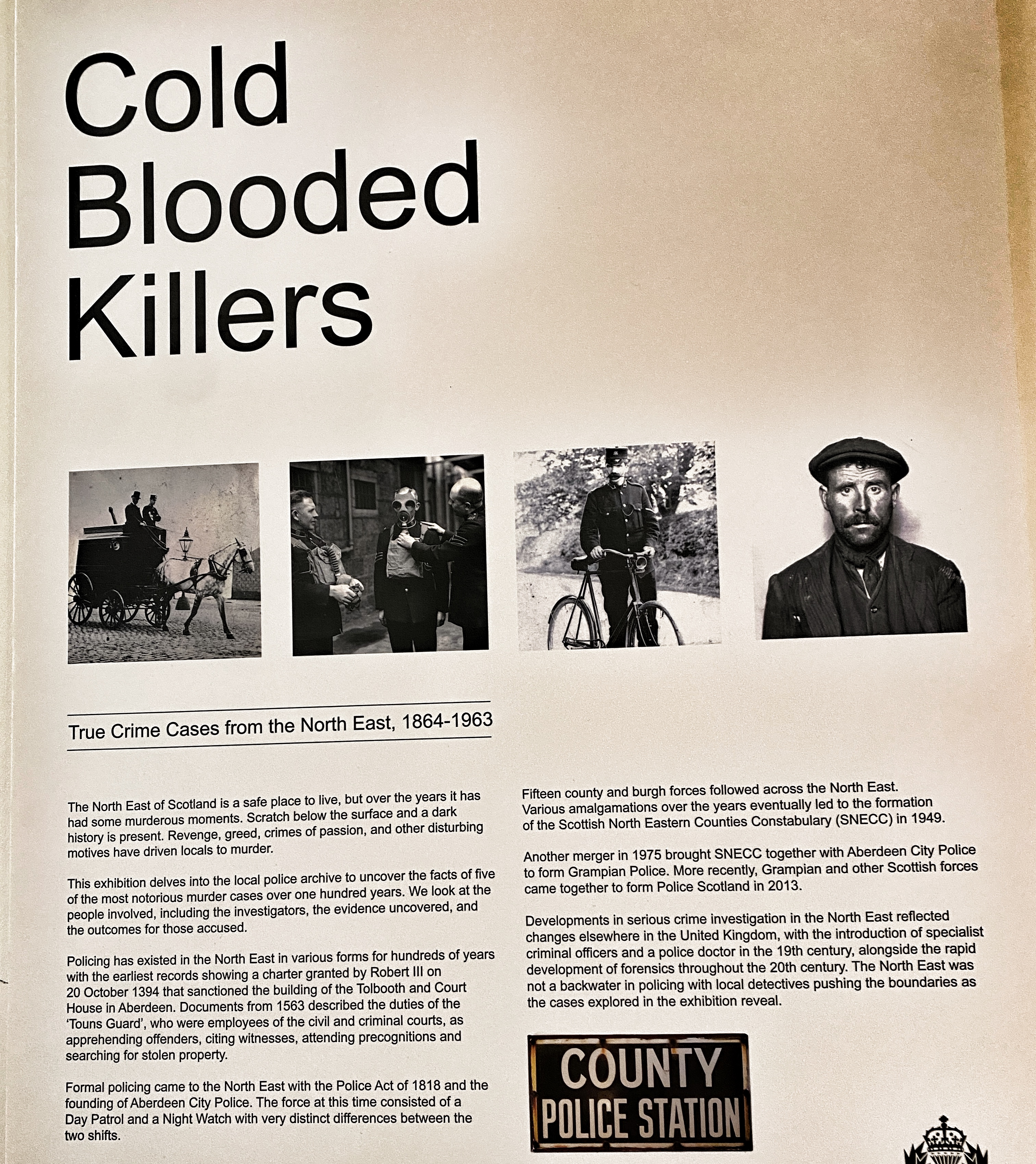 Was macht einen Mörder eiskalt? Fehlt es ihm an Reue? Ist es die absolute Berechnung, mit der er seine Tat plant und ausführt? Oder ist es die erschreckende Normalität, mit der er danach weiterlebt, als wäre nichts geschehen? Die AUSTELLUNG Cold Blooded Killers – True Crime Cases from the North East, 1864-1963 beim Granite Noir Cime Festival in Aberdeen führte mich in die tiefen Abgründe der menschlichen Psyche und zu einigen der berüchtigtsten Verbrechen Schottlands.