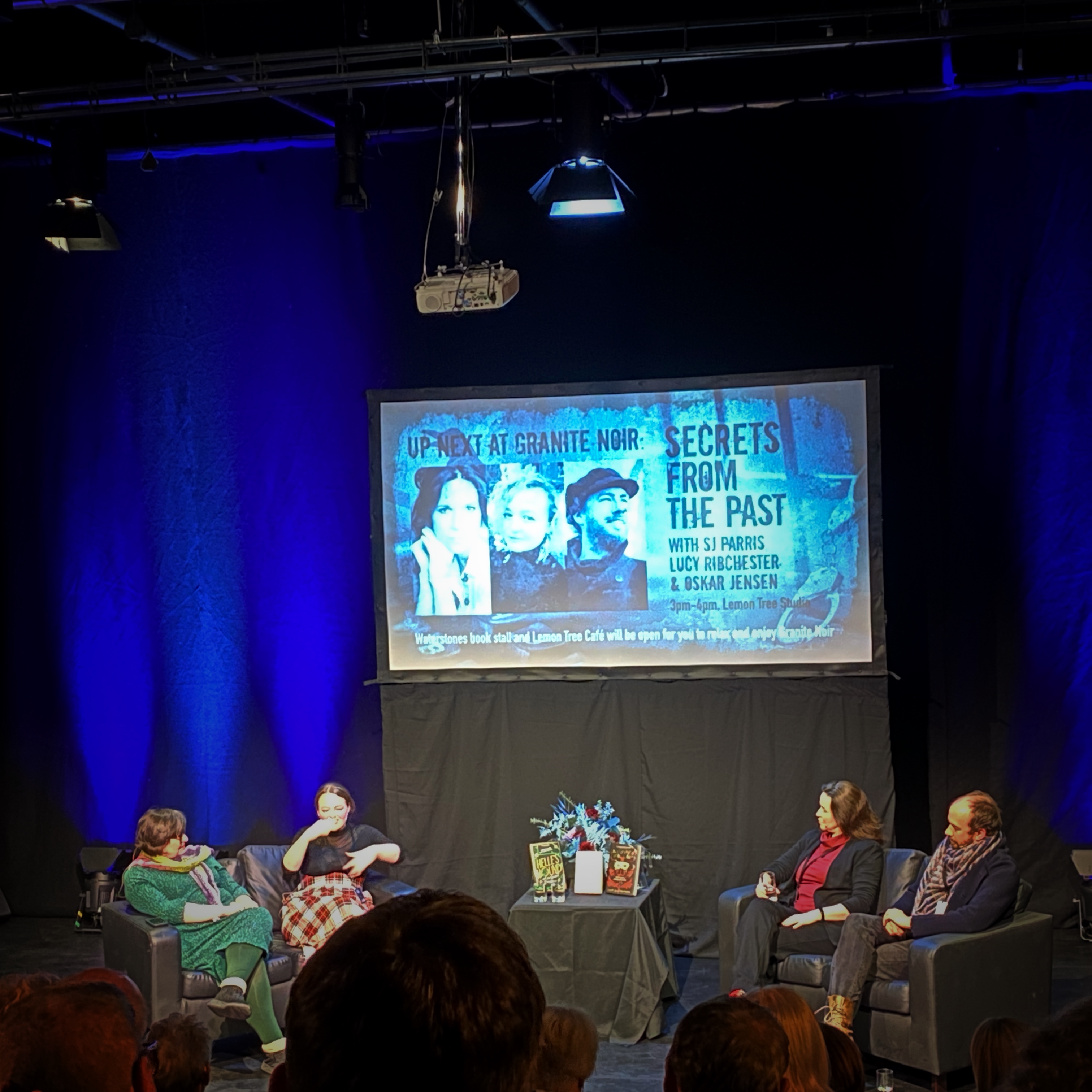 Der zweite Programmpunkt des Tages beim Granite Noir Crime Festival führt mich ins Lemon Tree Studio. Das Panel Secrets from the Past verspricht tiefe Einblicke in historische Kriminalfälle und die Kunst, vergangene Geschichten neu zu erzählen. Auf der Bühne sitzen drei Autoren, die sich mit genau diesem Thema beschäftigen: S. J. Parris, Lucy Ribchester und Oskar Jensen.