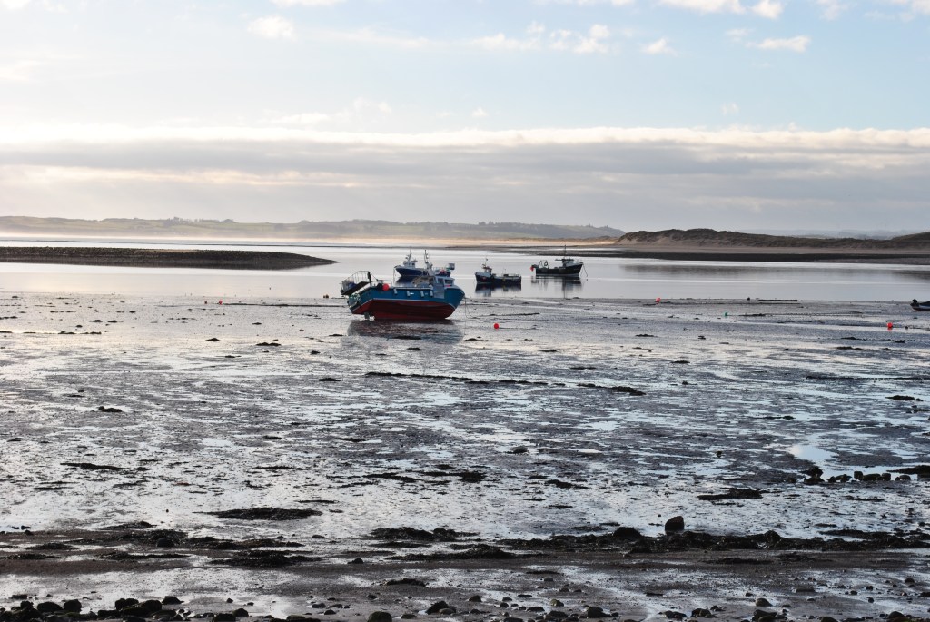 Nun also Lindisfarne. Der Mann ist tapfer und organisiert. Er checkt die Gezeitenliste. Ich hätte sie garantiert wieder falsch gelesen und wäre auf der Insel geblieben – mit einem langsam versinkenden Auto und einer panischen Sprachnachricht an die Küstenwache. Aber dank des Mannes wissen wir: Um 8:15 Uhr können wir rüber, müssen aber spätestens um 13:15 Uhr zurück. Sonst ist es vorbei mit dem trockenen Heimweg.
