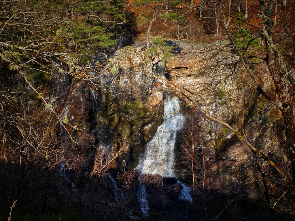 Der erste Teil meiner Wanderung führt uns zum Easan Dorcha, einem nicht allzu großen, dunklen Wasserfall (wie der Name besagt), der dennoch beeindruckt, weil er sich malerisch ins Tal stürzt, umgeben von uralten Pinien und leuchtendgrünen Birken. Der Weg schlängelt sich durch dichte Wälder und über steinige Pfade, während ich langsam an Höhe gewinne. Der Anstieg ist anspruchsvoll, aber die Aussicht auf den Wasserfall entschädigt für alle Mühen, denke ich. Bis mir die Gruppe Mountainbiker entgegenkommt. Es ist, als wäre in einem Cross-Country-Weltcup auf der Rennstrecke gelandet. Nur, dass es sich hier nicht um Profis handelt, sondern um Hobbyfahrer, die verzweifelt ihre Bikes den schmalen Bergpfad hinaufschieben oder in Zeitlupe einen halben Meter hinter sich bringen. Ich stelle mich in den Matsch neben den Pfad und warte. Der Weg ist schmal und man kommt nicht aneinander vorbei. Es dauert guten zehn Minuten, bis alle an mir vorbeigekämpft haben. Eine Trennung zwischen Wegen für Mountainbiker und Fußgänger, wie wir sie im Schwarzwald haben, gibt es in Schottland nicht. Zumindest ist mir keiner bekannt. Auf der Wanderroute aber herrscht Verkehr wie auf der A8 bei Pforzheim. Das ist neu.